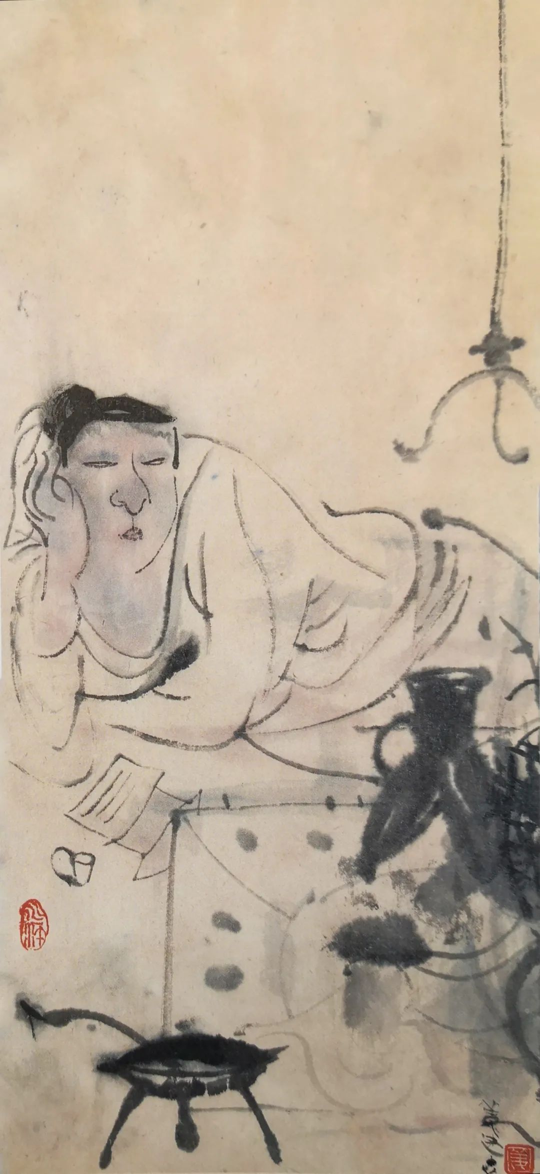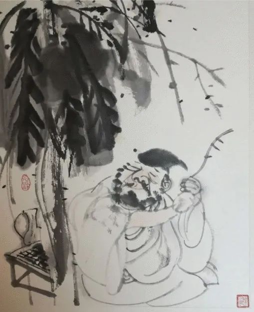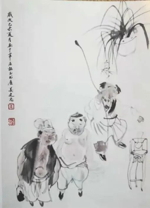 我是油画家,可是对于中国画在1975年左右就有所接触了。我当时在上海工艺美校就读,1978年,由于创作了一本古装连环画,我开始迷恋起中国传统人物,在大学课余时间,经常临摹任伯年、陈老莲、八大山人等的作品。大学毕业,我在北京与田黎明一起画过赵匡胤连环画套书,各自独立画一本。从此我对国画密切关注,但动笔不多。由于我和了庐先生曾经是同事,1985年从北京回上海后,经常去他的画室看他作画,听他讲述分析中国画之缘由。2010年,我开始在宣纸上舞弄笔墨,在油画创作之余,每年抽20天左右时间,断断续续地坚持了下来。中国画是对中国文化的阐释,了庐先生曾言“文化性大于技术性”。