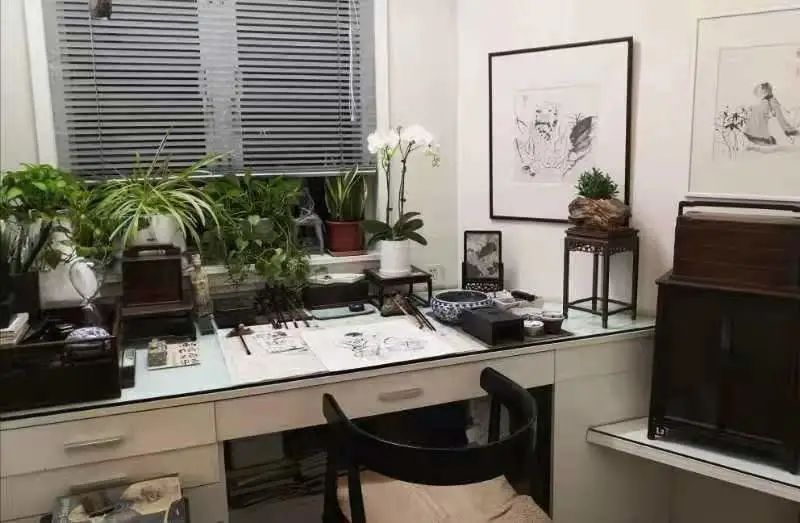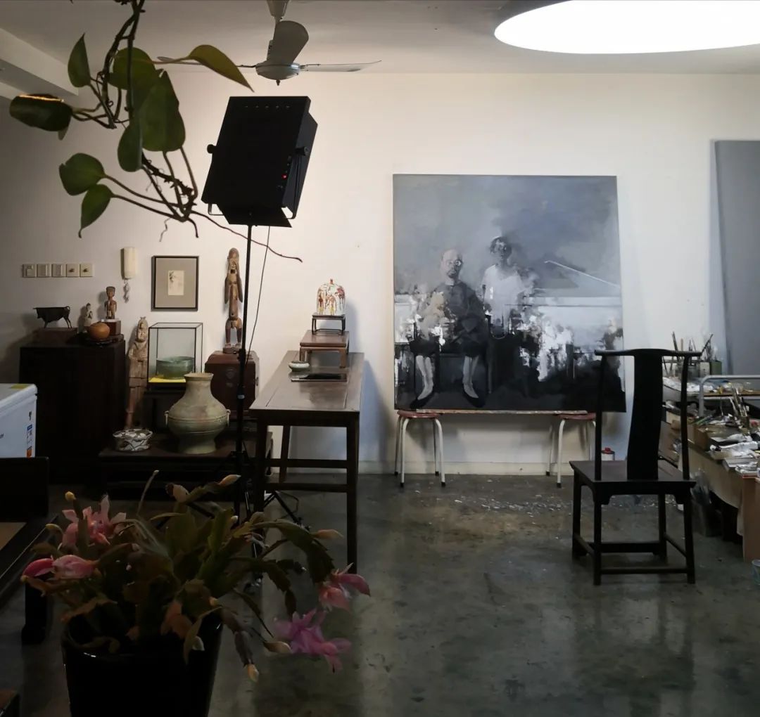 我喜欢在一个干净、有艺术氛围、有音乐的环境中创作或看书学习,把工作转换为享受,这有助于激发灵感。我习惯于白天画画,几乎从不熬夜。早上进画室坐在一把自己喜欢的椅子上,美美地泡一壶好茶,对着画布发愣许久……