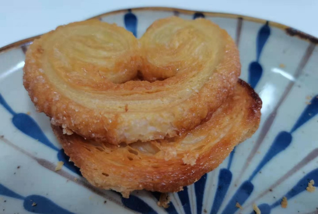 层层酥脆的蝴蝶酥,吃起来有一点点轻微的焦糖香,甜味也刚好,不腻口。