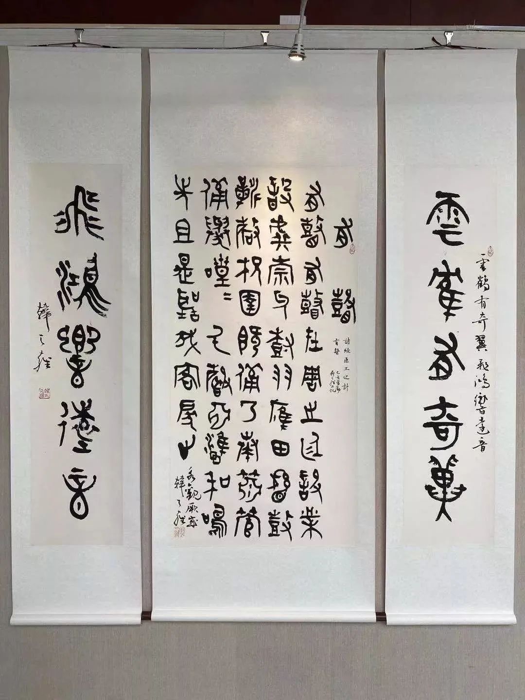 虽然当代篆书创作群体从整体声势上略有不及行、草等体,但仍有数位书家,在篆书创作特别是大篆创作方面独标一帜,取得了令人瞩目的成绩,中国美术学院书法系的教授、博士生导师韩天雍即是其中一位。