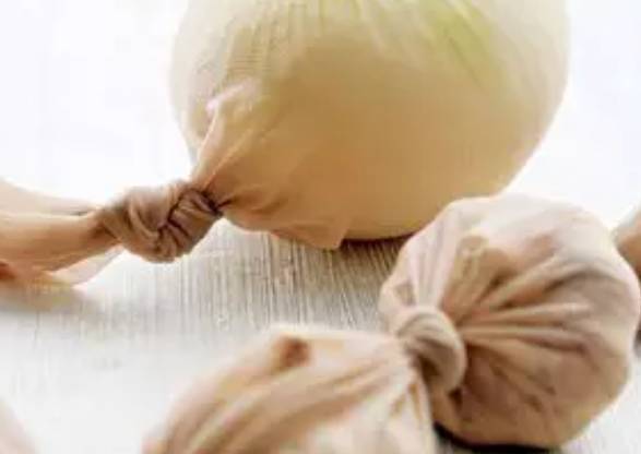取一个干净的丝袜,将一个洋葱放进去,打结再继续加洋葱,然后将丝袜挂起来,放在通风阴凉的地方,能有效延长洋葱的保存时间。