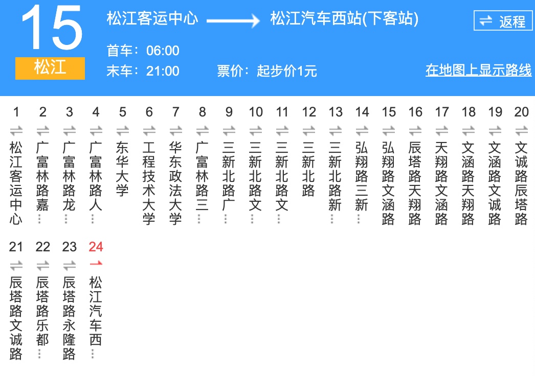 ★ 推荐理由:松江15路,共有24个站点,从松江客运中心到松江汽车西站,串联起松江的过去与现代。