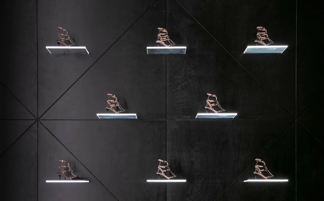 与门厅的神圣、充满力量的氛围产生极大反差的,是散发热情与诱惑的地下俱乐部。在这里,充斥着摇滚、街头精神的铆钉元素反复出现,而Valentino赋予了其更有深意的女性力量。