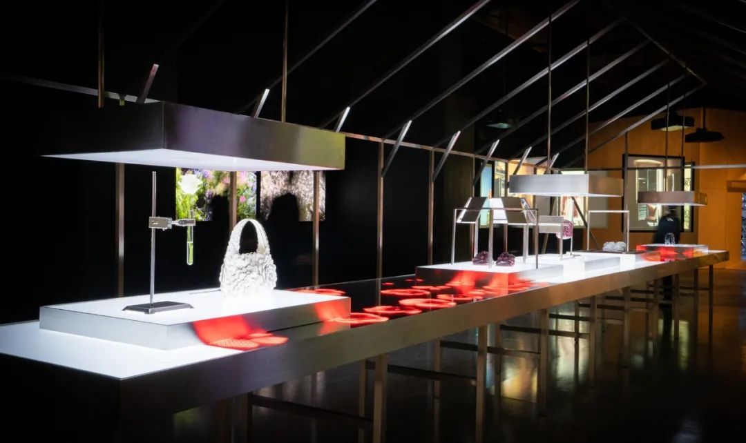 人们对玫瑰的印象通常是浪漫、富有艺术气质,而对于Valentino来说,玫瑰则更容易与科学实验室联系在一起。工坊区域展示了Valentino如何通过对植物学的研究以及匠心工艺打造出具有划时代意义的玫瑰元素。