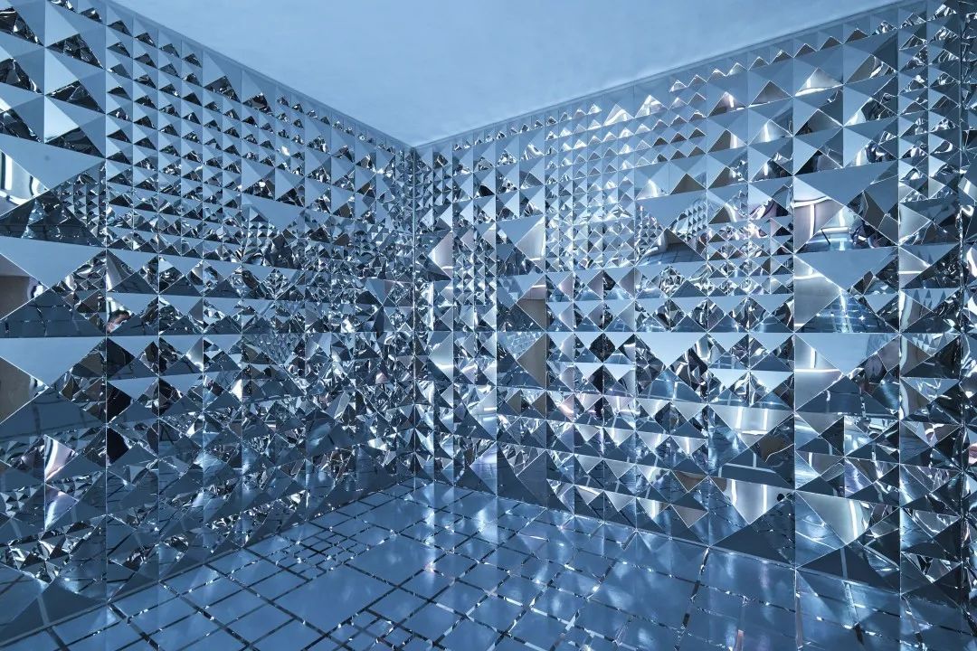 展区内运用众多铆钉构造了一个乌托邦式的“镜面世界”,情感与感官将在这里无限被放大,光与声在此交相碰撞,不失为一个绝佳的打卡地。