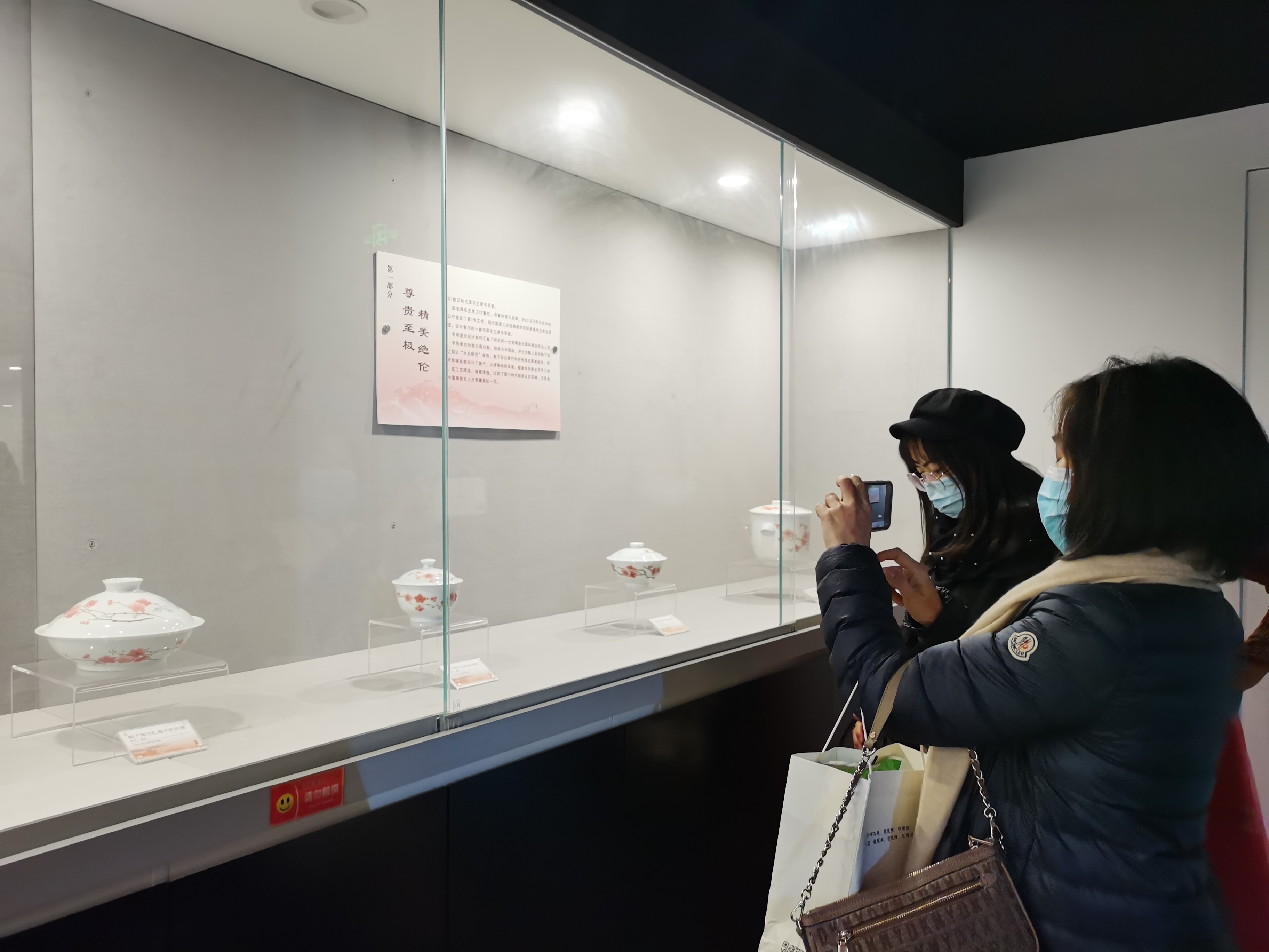 馆内展品分多个不同主题。“当代官窑臻于至善”部分展出了毛泽东主席专用瓷,也就是代号为“7501”的瓷器(1975年,国家工业部陶瓷研究所根据毛主席生活习惯设计制作一套毛主席专用瓷)。据介绍,“7501”瓷有两个不寻常特点,一是餐具都有盖,因为毛主席年事已高,工作繁忙用餐无规律,住处离吃饭的地方也有一段距离。因此,为了让毛主席能吃到热饭热菜,特地为餐具都配上了盖子,以便食物保温。毛主席喜欢用菜汤泡着饭吃,所以汤碗在设计制作上也相对深一些,这样就可以多放一些汤水。二是专用瓷装饰图纹的创作灵感来源于毛主席的诗词,如毛主席非常喜欢的竹子和梅花。专用瓷的胎釉为高白釉,胎体为半脱胎,有高白、高透、高润之感。