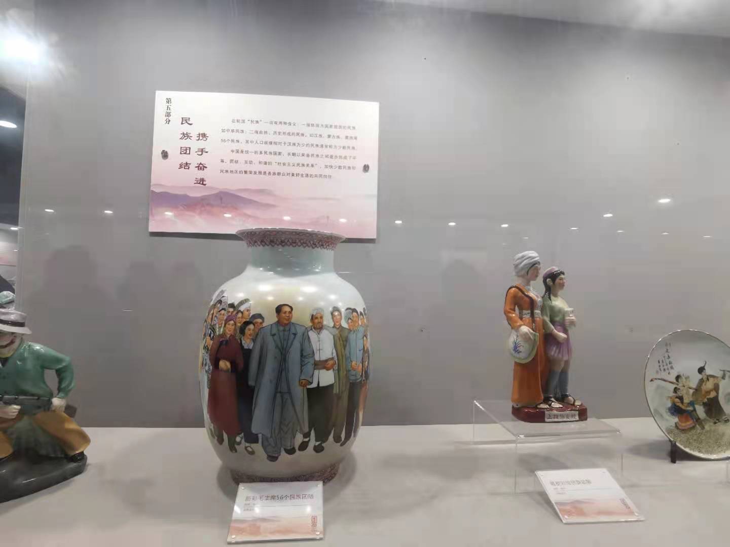 馆内还设立了“开国将勋功标青史”“肩负使命军强国安”“自力更生奋发图强”“民族团结携手奋进”“国礼美器 彰显魅力”“崇尚英雄 学习模范”等展区,围绕不同主题,通过多样化的瓷器展品,引领参观者了解“四史”,领略红色瓷文化魅力。
