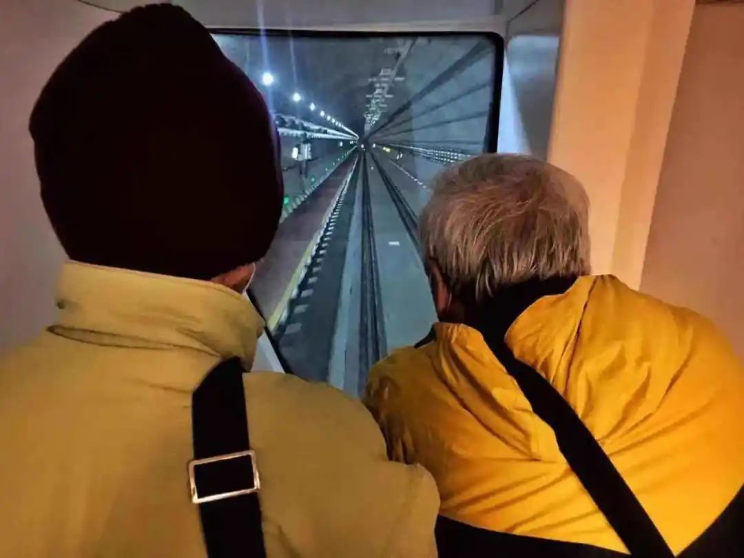 家住康桥的市民施女士带着孩子一起坐上了首班车地铁,她们特地挑了车头的位置上车,站在车头,车外美丽的风景一览无遗。施女士称,这是她第一次体验开放的驾驶室,也是第一次看到隧道内的景象,兴奋激动之情溢于言表。