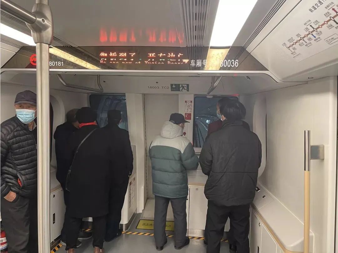很多周边居民都来体验了。由于18号线是全自动无人驾驶,乘客们最热衷的地方是车头,老人孩子都来体验一把“驾驶”的感觉↑
