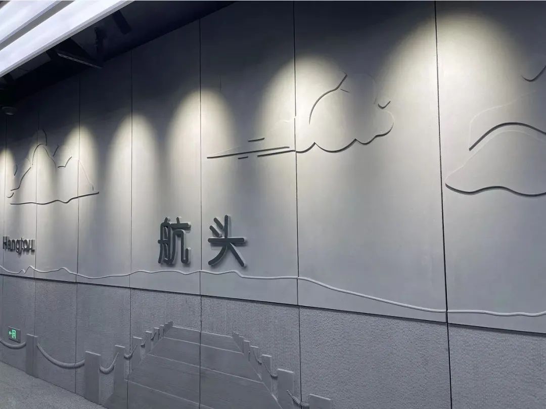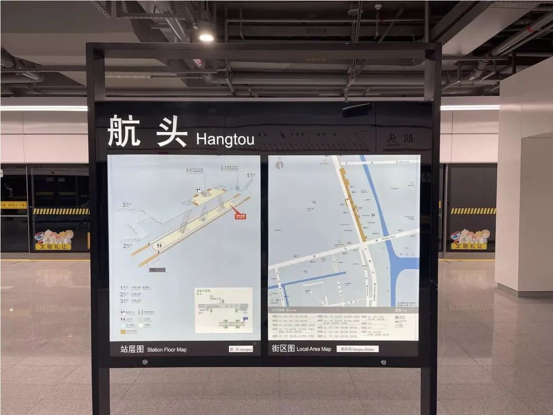 当地铁到达终点站基隆路站时,小交发现站台的墙壁上贴满了蓝色的世界地图,地铁站工作人员称“因为外高桥是面向世界的。”