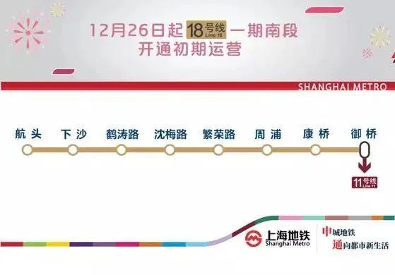 18号线一期南段共设航头站、下沙站、鹤涛路站、沈梅路站、繁荣路站、周浦站、康桥站、御桥站8座地下车站,其中御桥站可与既有的地铁11号线换乘,它的开通大大方便沪南公路、御青路沿线的市民乘客进入轨道交通网络。