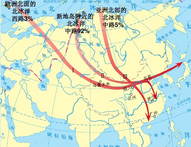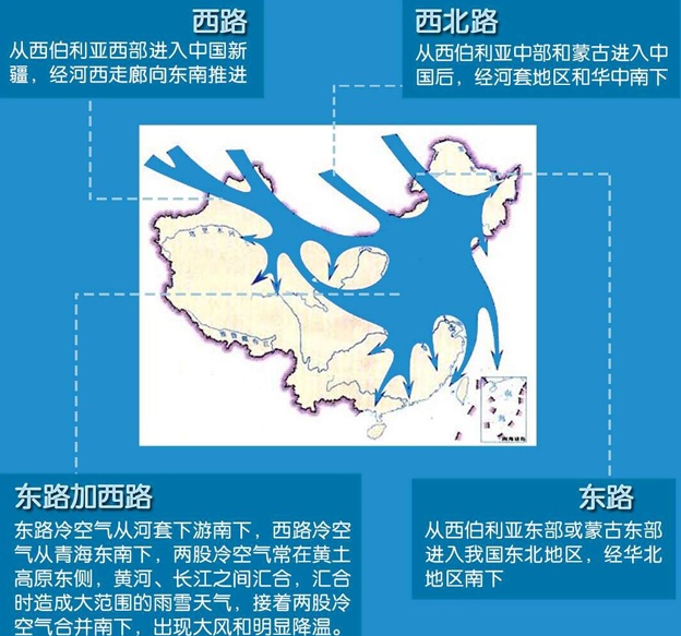 几个主要冷空气源地中,95%的冷空气都要经过西伯利亚中部地区,并在那里积累加强,可以说那里是“寒潮加油站”“寒潮关键区”。