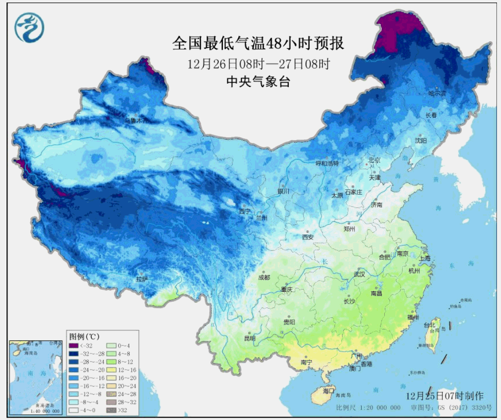 中国气象局发布寒潮的标准∶ 当冷空气过境后,凡气温24小时内下降10°C以上,并且在这一天内的最低气温在5°C以下。