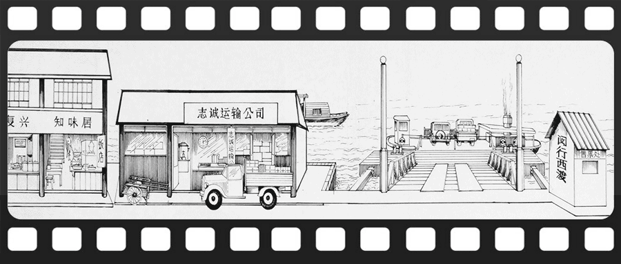 明弘治《上海志》记载:“黄浦渡在十六保”;清乾隆时有“便民航”往来上海、闵行间;清嘉庆间己发展成东、西两渡;当时的闵行西渡渡口,很多车辆通过摆渡的方式抵达对岸。眼尖的你会发现渡口右侧的售票亭也和张文华老人画的方位一致。