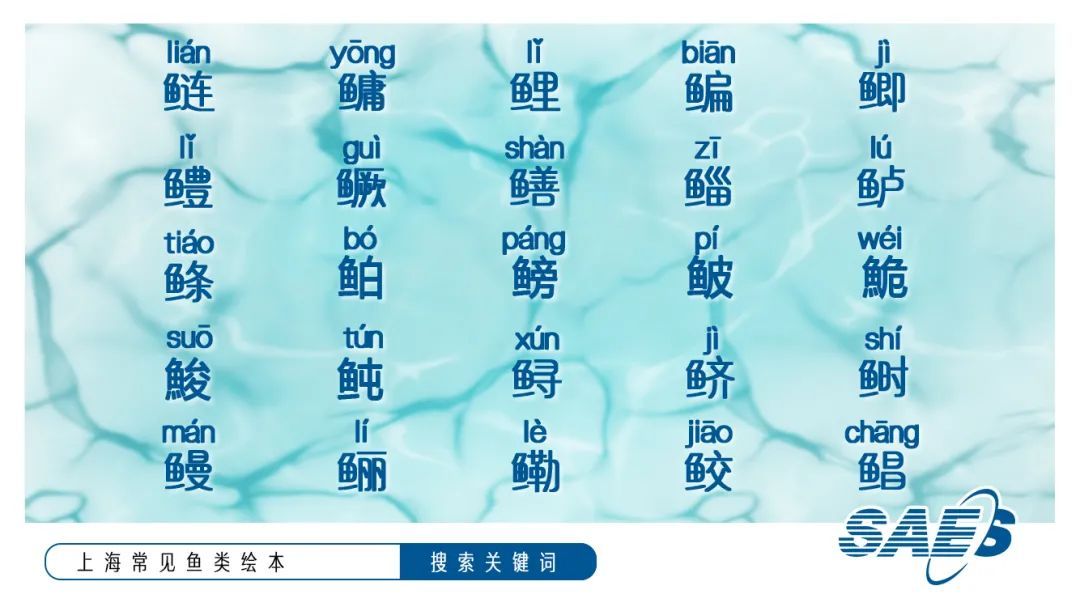 这里给大家整理了本次绘本和鱼相关的所有生字读音,方便大家自行查询: