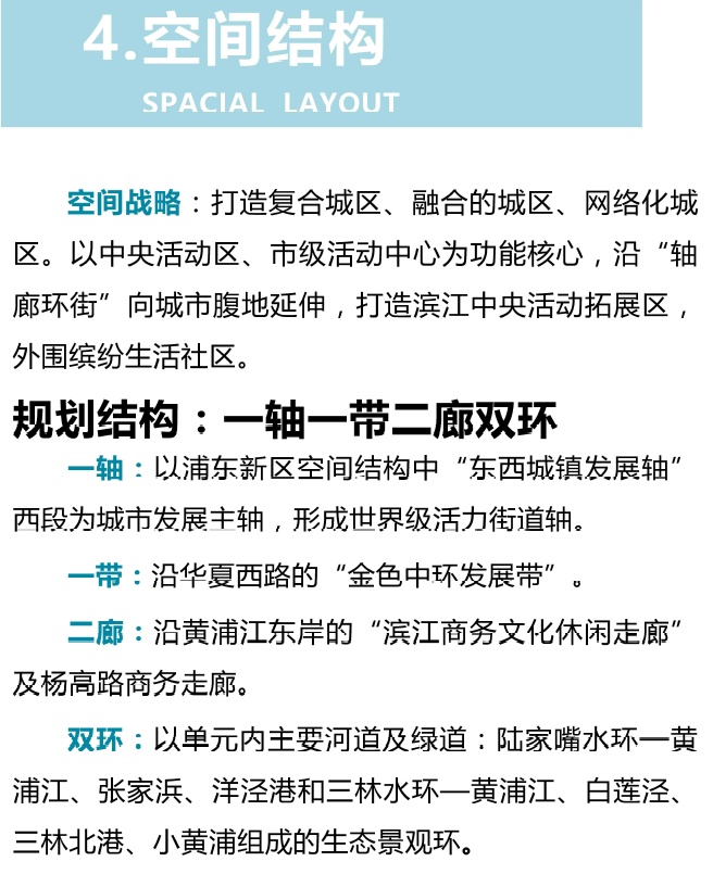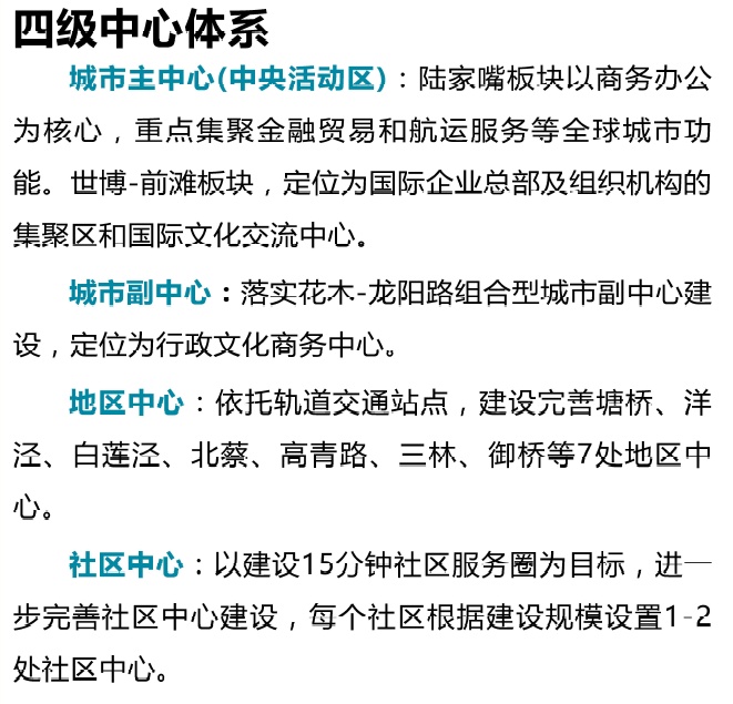 市规划资源局今起至2021年1月29日公示陆家嘴——世博、张江、金桥——外高桥三个单元规划草案。陆家嘴——世博单元总体发展目标是:全球城市开放创新先行区、文化引领示范区、生态宜居践行区。张江单元发展目标是:国际一流科学城核心承载区,宜居宜业创新城区,高品质的城市活力中心区。金桥——外高桥单元的发展目标是:具有城市温度、国际高度、区域广度的产城融合典范城区。