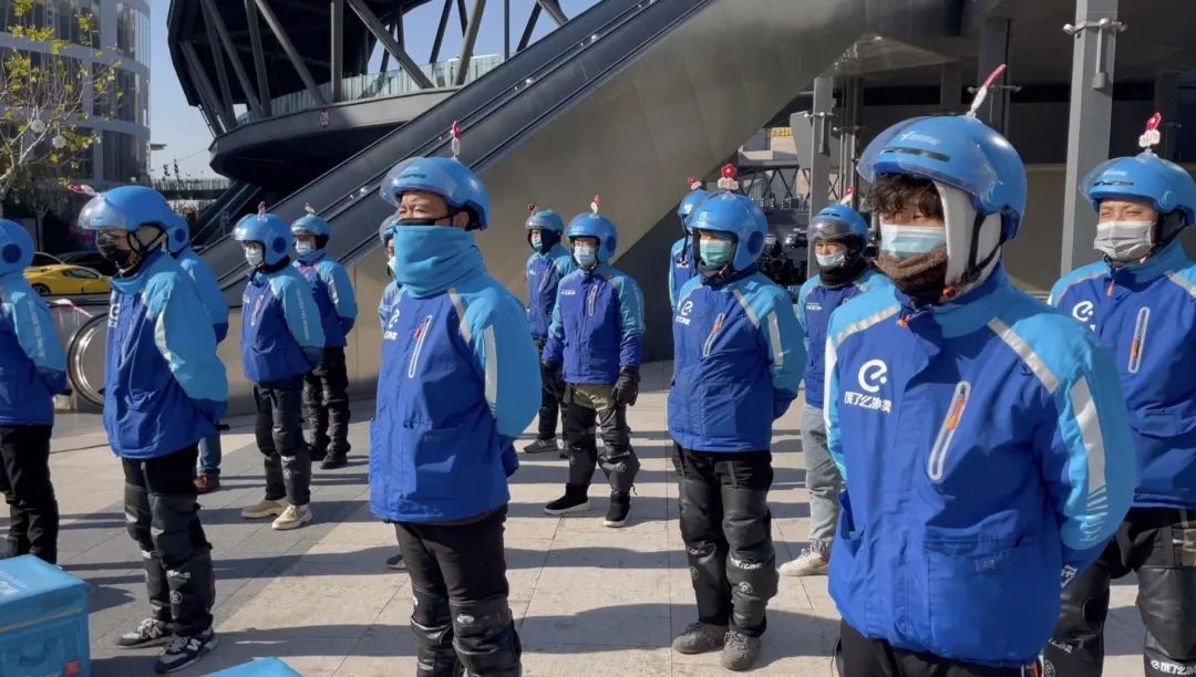送餐平台透露,寒潮来临前,他们已陆续在全国范围内为骑手分发了护膝、围脖、手套等冬季关怀物资,并在类似今天这样的恶劣天气,还设置了额外的补贴。同时,在骑手管理方面,各站点也不断加强对骑手道路交通安全的宣导,希望骑手注意安全。此外,以近铁商圈所在的长风新村街道为例,为预防寒潮来袭,街道辖区内白兰片区和枣阳片区的餐厅也已为骑手准备了暖宝宝、热姜茶饮。