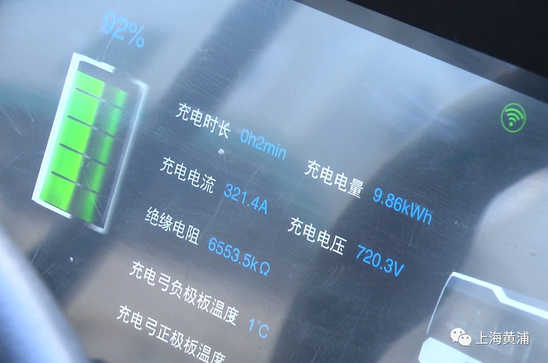 在卢浦大桥下的146路终点站,每当有车辆进站,运维人员小何就会和同事上前,引导驾驶员停车,由于充电弓和车厢顶部电极板需要紧密的衔接,停车的位置非常有讲究,如果出现偏差,充电弓降下无法准确衔接电极板,不光无法进行充电,充电弓也可能会被卡住。确保车辆停在正确位置后,小何与同事就会上车,与驾驶员一起查看充电数据和充电画面。