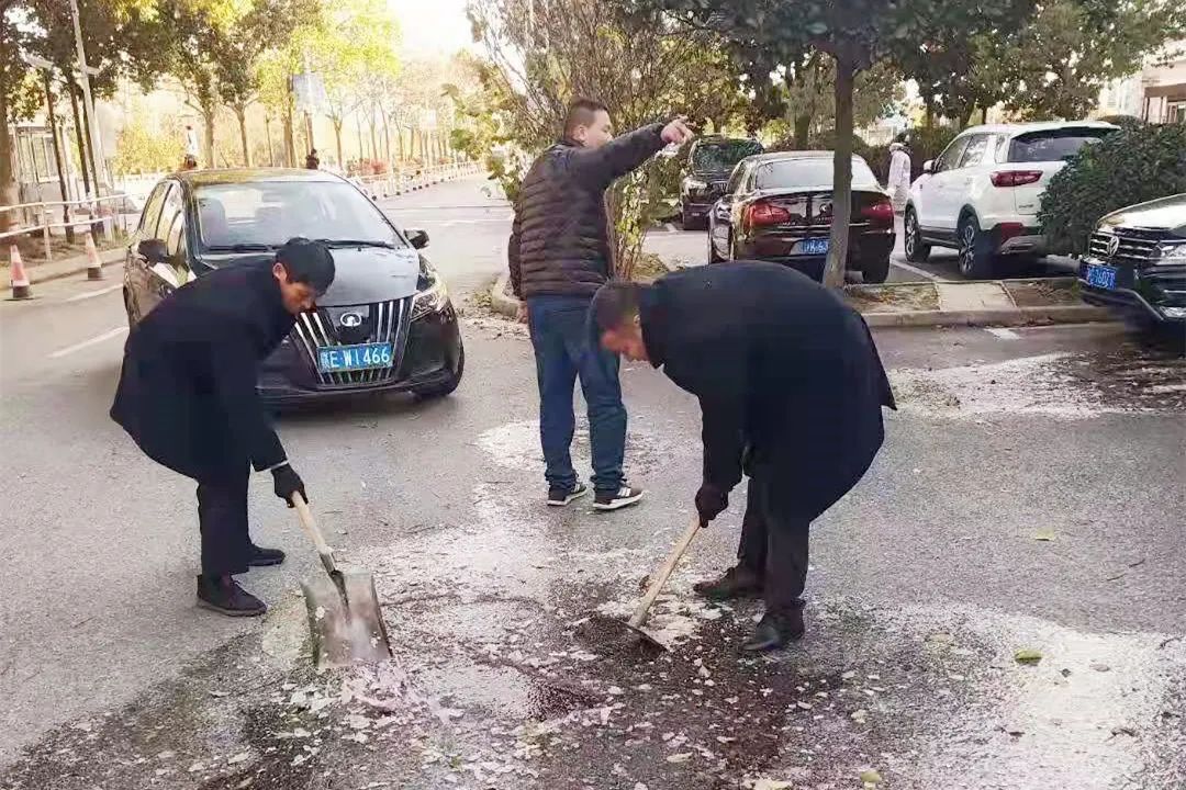 12月30日清晨,虹房下属物业公司积极组织人力、物力,对管辖小区内结冰的道路进行除冰,确保小区居民出行安全。