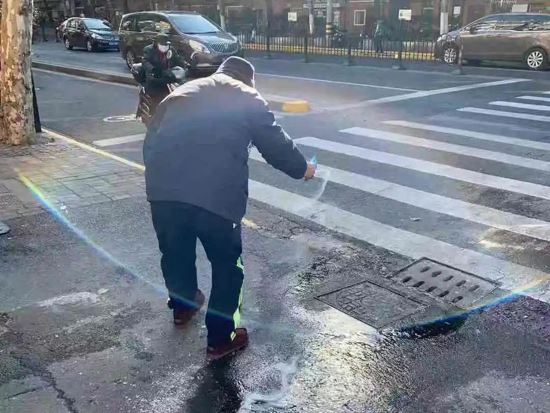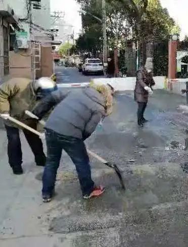 殷行物业公司管辖的水电新村地处杨浦东北角,因前日大雨降温,闸殷路60弄28支弄小区道口路面瞬间积水成冰,把一段主干道盖得严严实实,过往行人都小心翼翼地“跋涉”。公司迅速反应,组织员工用铁锹、扫帚等工具铲除积冰,大家不畏严寒,齐心协力,经过一上午奋战,主干道冰块全部清理干净,居民们又能安全通行了。