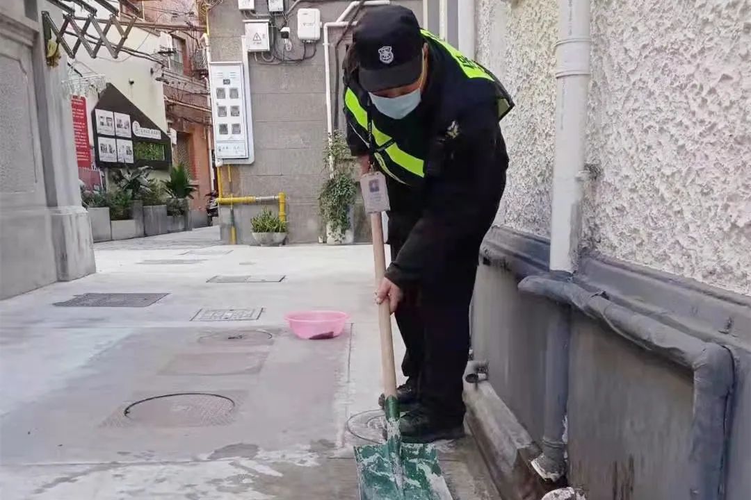 永嘉公司联合保安保洁队伍铲除结冰34处,铺设麻袋草袋36处,疏通结冰管道1处,联系抢修队伍完成长乐路201号水管爆裂抢修和陕西南路271弄45-49号大楼水箱盖加固。