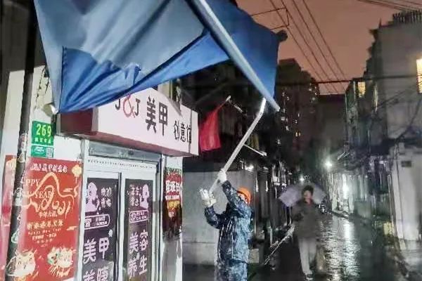 永理公司紧急排除局门后路3号407乙、瑞金二路410弄8号等多处雨棚、晾衣架破损高坠险情,第一时间联系处置打浦路210弄因大风引起的突发停电,各小区责任人主动上门了解居民用水状况。