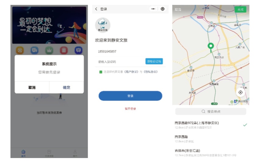 2.点击“我的”进入登录页面,输入手机号码获取验证码即可登录。登录后,需要先在地图上选取您所在的地址,并点击保存;