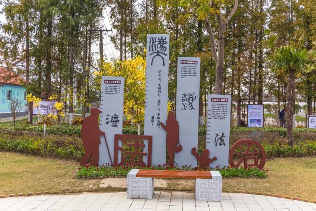 去年11月,白鹤镇的首家法治主题公园在红旗村落成,法治主题公园位于村内红旗路绿化广场上,占地300多平方米,由“法治之窗”“法治纲要”“法治时空”以及“关爱”四方面内容组成,集法治教育、法治文化、法律宣传等功能于一体,将法治文化元素有机融入村庄环境建设,不断延伸普法覆盖面。村民们在闲暇时常常聚集于此,在健身休闲的同时潜移默化中接受法治文化的熏陶,增强法制意识,提升法律素养,全面营造全民学法、尊法、用法、守法的良好氛围,实现了法治宣传教育与乡村建设有机结合,为红旗村积极创建上海市民主法治示范村建设奠定了坚实的基础。