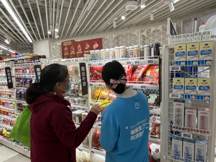 最近,盒马店员黄甜甜每天都会被顾客询问是否有腊肠、腊肉、腊鸡腿等年货,大部分人还会特地追问是否是家乡做法。“我听出来湖南、湖北、四川的都有,口音不同,问的人多了我也能大致分辨了。”黄甜甜是四川人,遇到老乡,她总会热情推荐正宗的四川腊味,“我家今年过年就吃这个,这个味道对哟。”