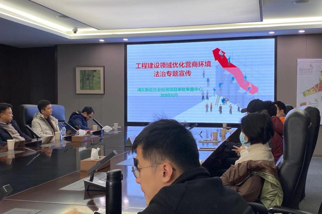 在浦东新区审批审查中心专门组建政策宣讲团,2020年12月间,结合重大工程、重大产业项目等协调推进要求,分别前往张江国际医学园区、金桥开发园区、金色中环建设指挥部等地,组织开展了系列专题宣讲活动。