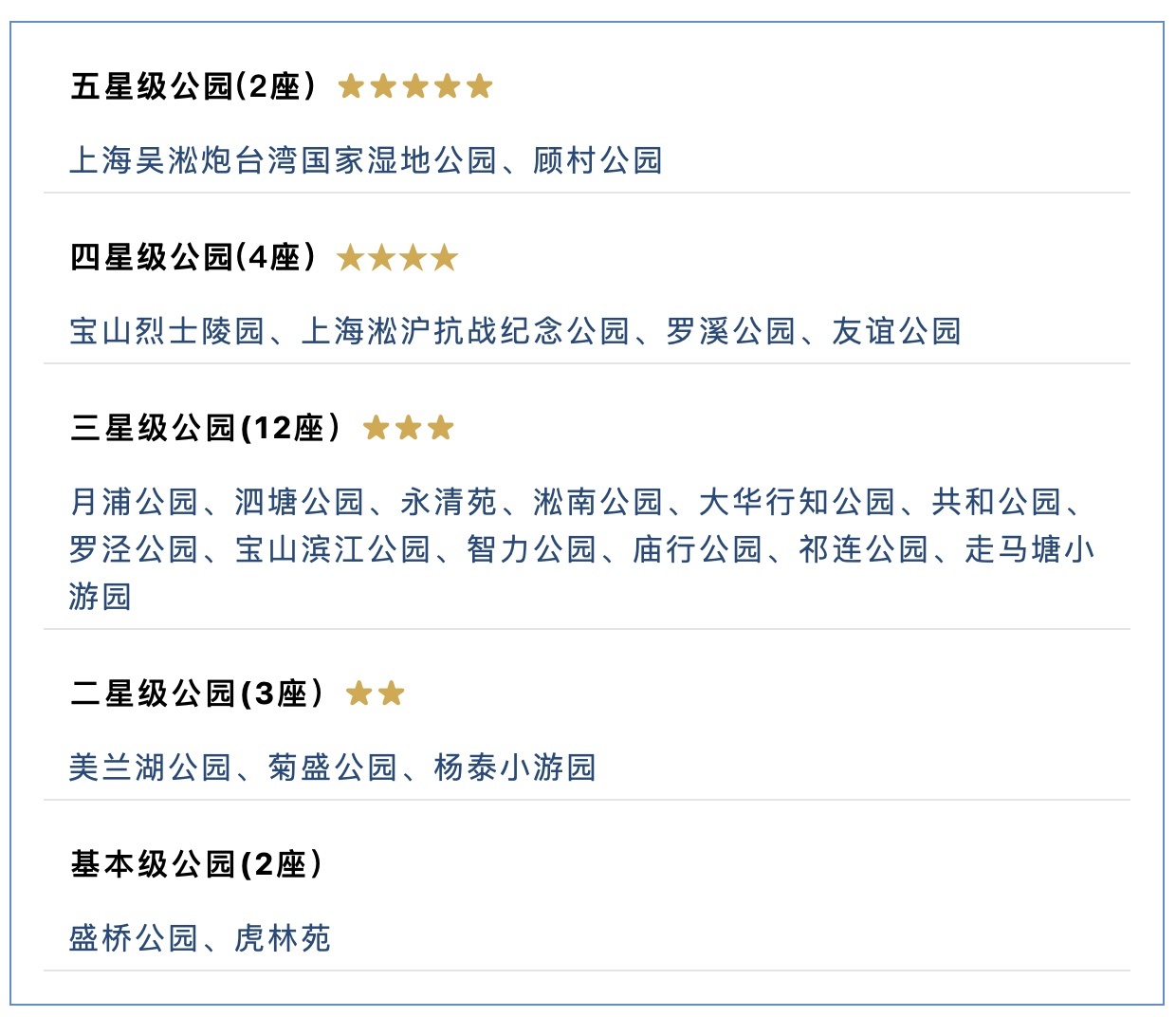— 宝山区星级公园名单 —