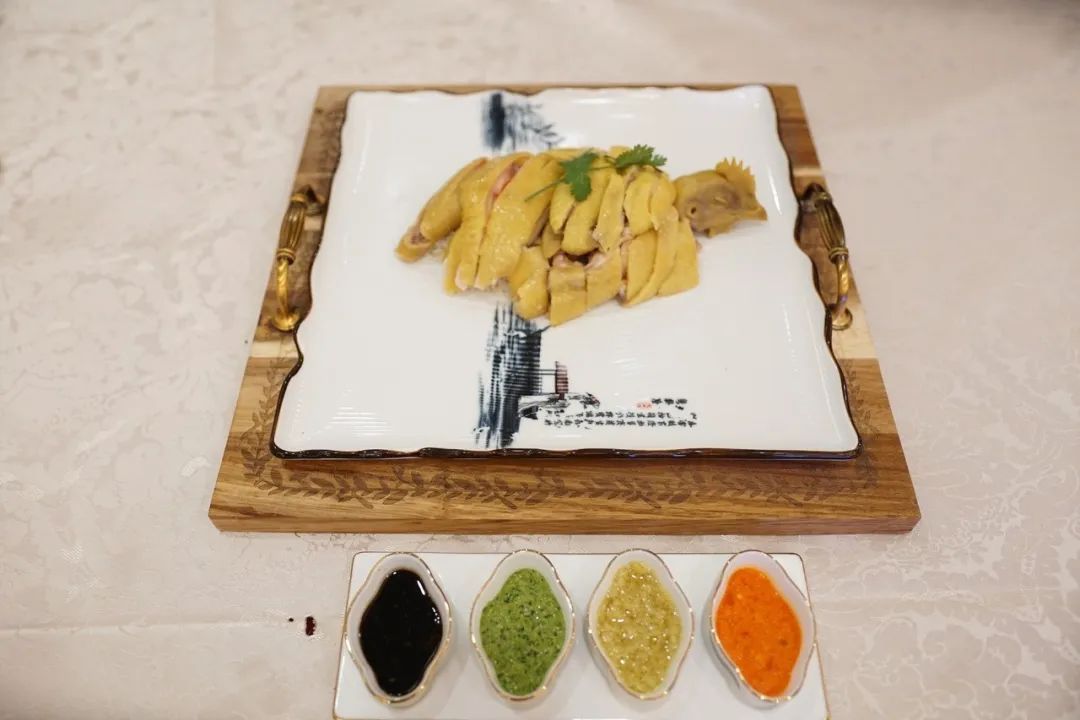 仙居有一道独特的美食——碧青三黄鸡。三黄鸡号称中华第一鸡,明朝开国皇帝朱元璋品尝此鸡后评曰:“此鸡喙黄、爪黄、羽黄,可称三黄鸡。”仙居三黄鸡的历史悠久,是典型的优良地方品种鸡,体型小巧、羽毛紧凑、尾羽高翘,又称“元宝鸡”。“碧青”字则是来源仙居的高山茶叶,这道菜是将仙居特有的黄鸡放入高山茶水中反复烫熟,再放进冰水里冰冻,既让鸡肉充满茶叶的芬芳,又保证了鸡肉的紧致和嚼劲,搭配不同的酱料就有不同的风味,口感饱满,营养丰富。