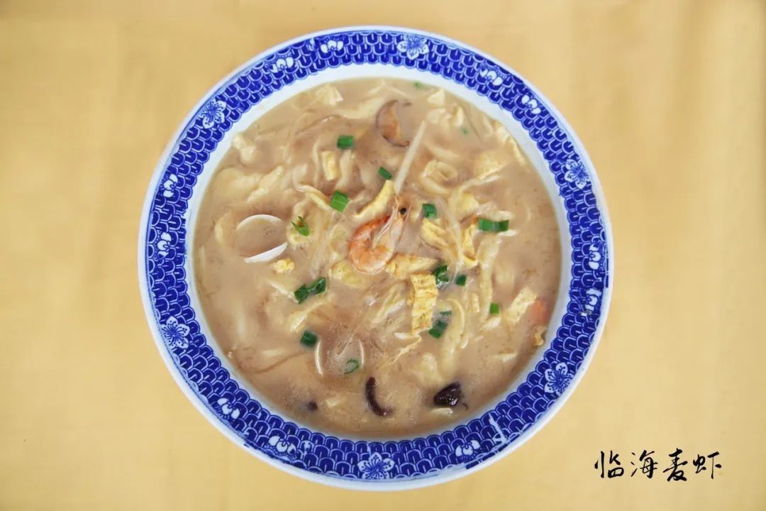 来到临海,麦虾是一定不能错过的小吃,一碗热腾腾的麦虾,油亮的“面疙瘩”被包在木耳、蛤蜊、丝瓜这些新鲜清爽的配菜中,还有虾干、蛤蜊、蛏子的十足鲜味,数种滋味交织让人满足,除了鲜还是鲜。