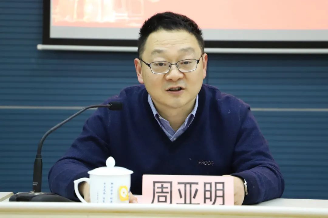 ▽在上海市教工排球协会成立大会上,复旦大学党委副书记、副校长周亚明致辞。周亚明代表复旦大学对上海教工排球协会的成立表示热烈的祝贺,对参加本次大会和精英赛的各位领导、各位老师表示诚挚的欢迎,对上海市教育工会、区教育工会、直属工会、兄弟高校工会一直以来的信任和支持表示衷心的感谢,也特别感谢沈富麟教练一直以来的关心和帮助。