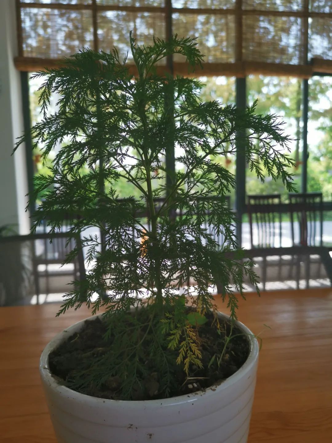 崇明苦草,一年生菊科类野草,成熟时枝高可超过一公尺,上下分枝横生,枝叶嫩时绿色,老后呈黄褐色。其叶互生,分裂极细,夏秋时开花,头状花黄色,很小,球形,全株有特殊刺激性气味。