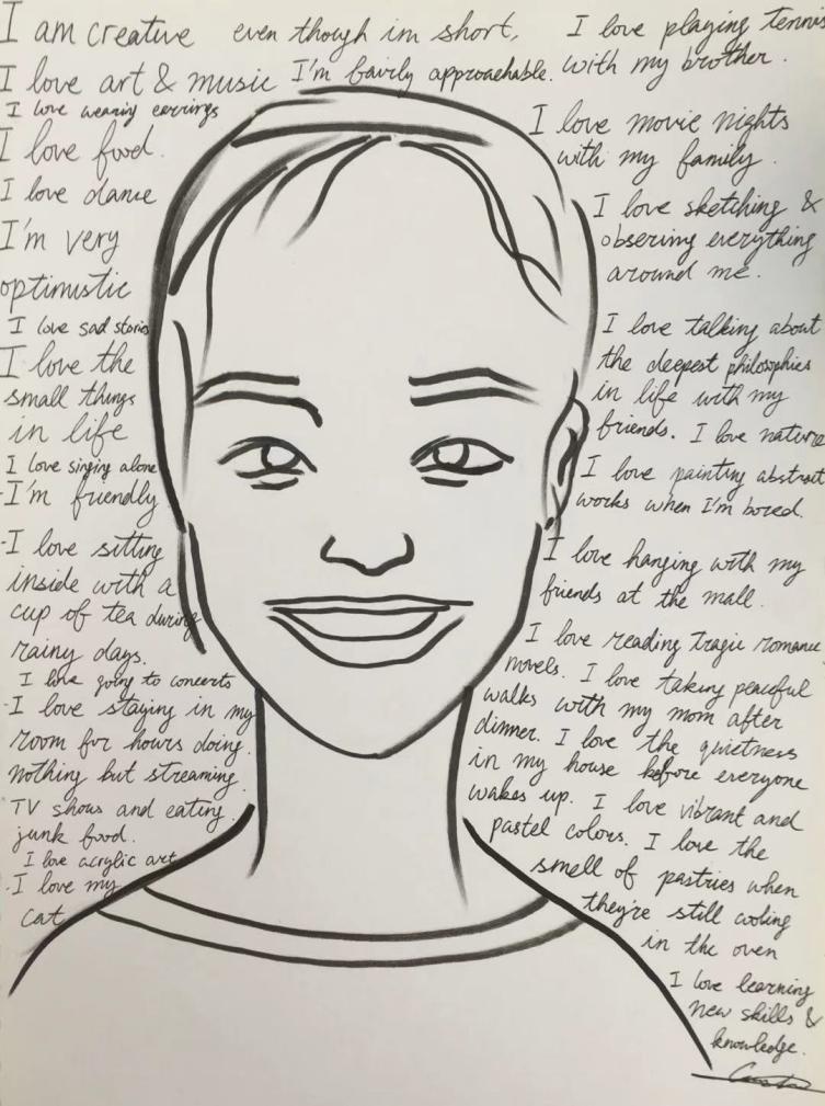 在平时的教学过程中,导师Yina感觉Cassie是一个气质很独特的女孩,对艺术很有热情,而且很有自己的想法。