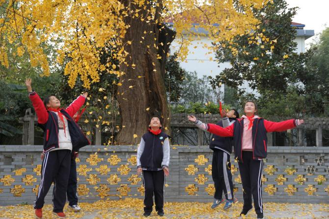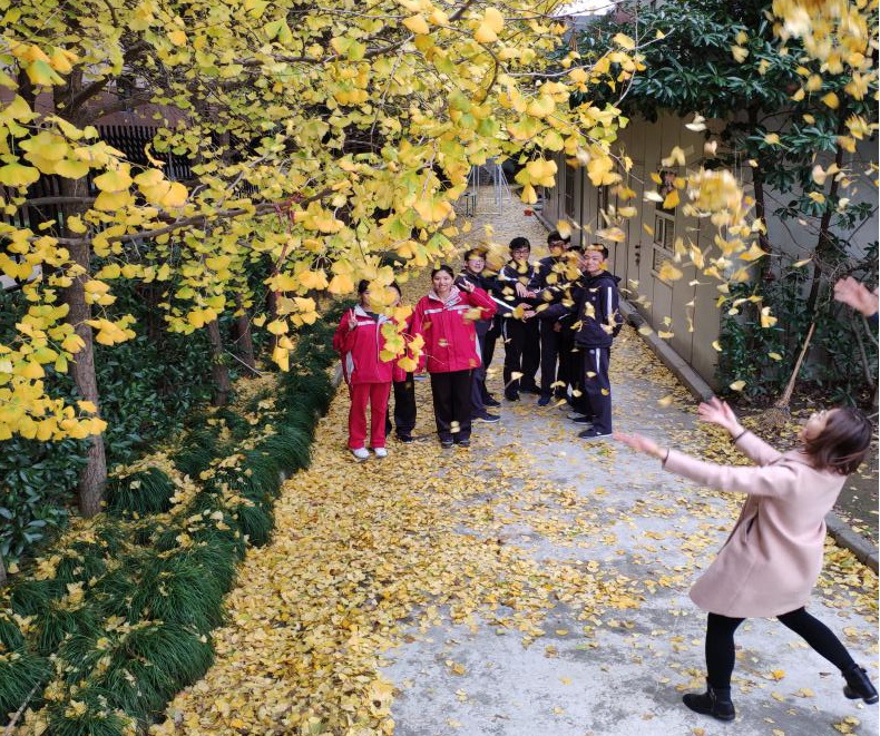 华东师大附属天山学校:银杏叶在秋风中浅吟低唱,我们用镜头记录下师生的风采和笑颜。