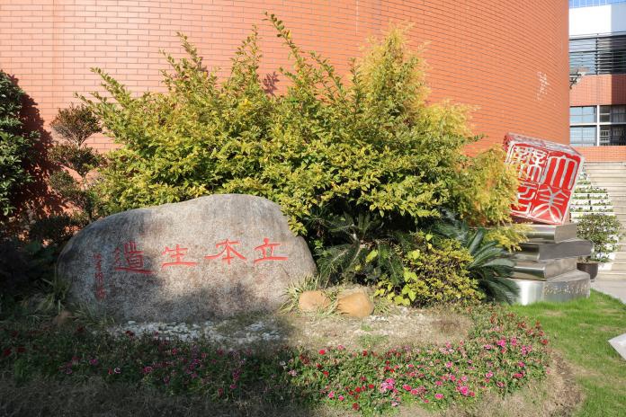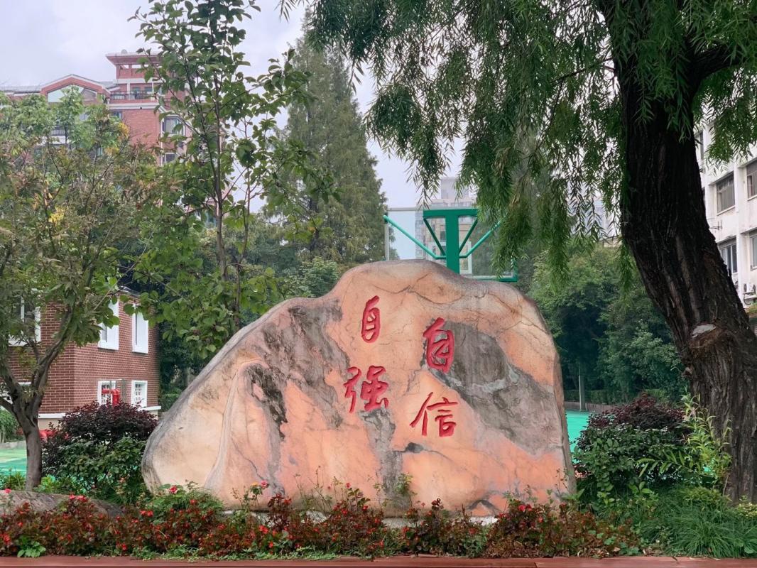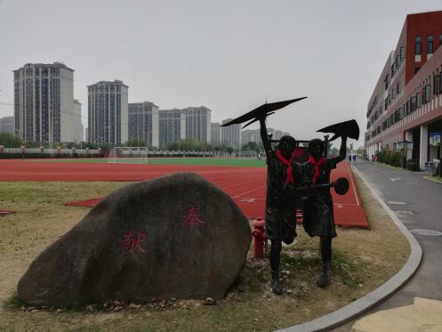 金卫小学:学问石正面刻着“学”字,背面刻着“问”字,代表着治学好问的精神。