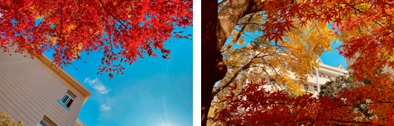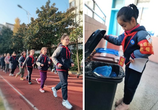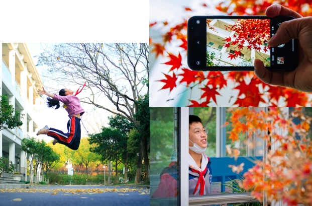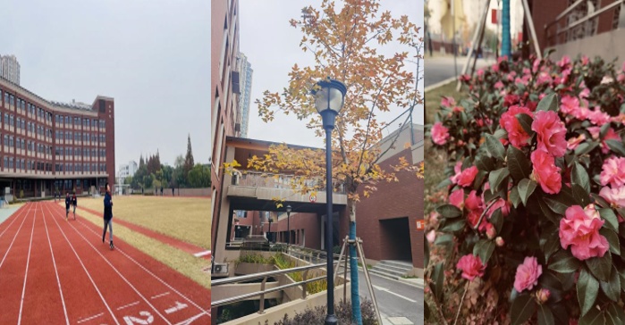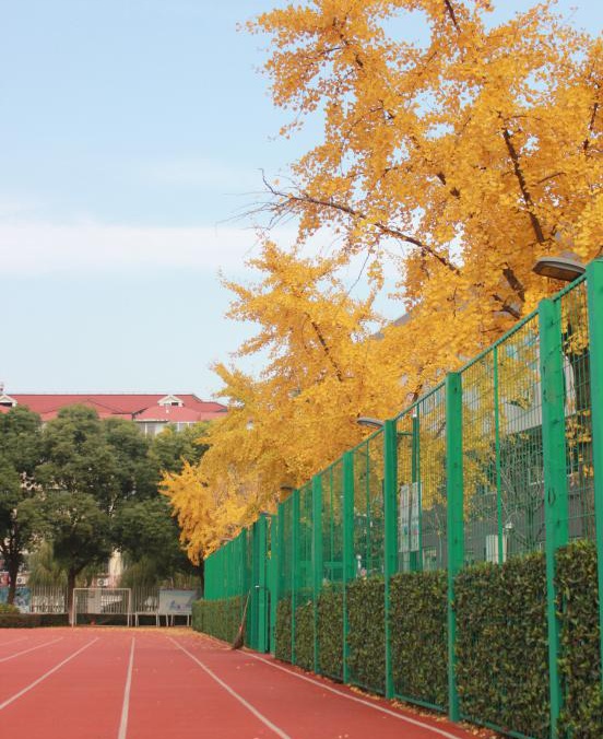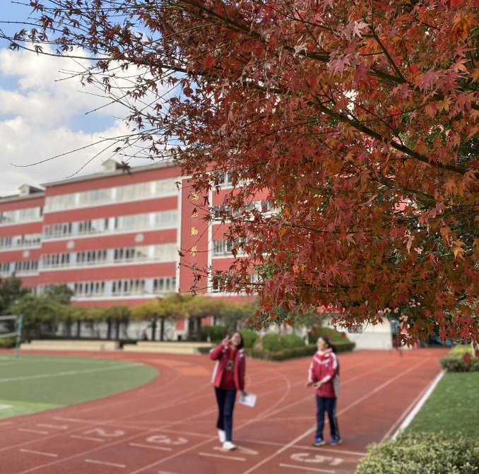 上海市第五中学:操场上同学们努力晨跑锻炼体魄,红色的枫叶点缀着校园,鲜红艳丽的茶花依旧生机勃勃。