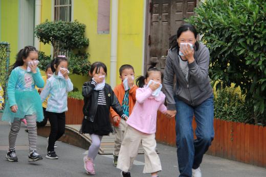 徐泾第二幼儿园:警报声突然响起,校园消防演练开始啦!孩子们捂上湿毛巾,在老师的带领下,有序逃生。
