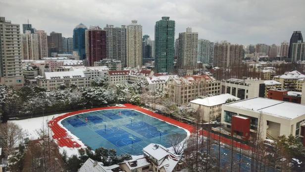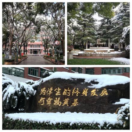 上海市第三女子初级中学:冬天的市三校园银装素裹,装点着女孩们青春的梦想。