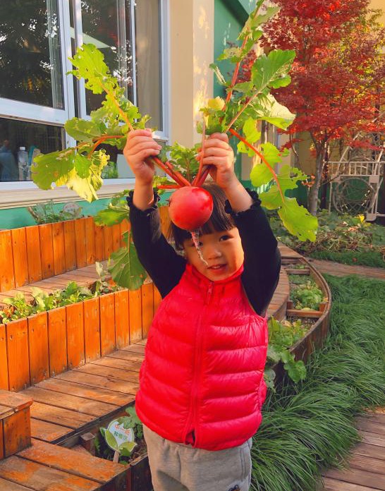 新港路幼儿园:丰收的季节~我们开心菜园的菜都长好啦!