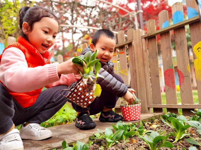 兆丰幼儿园:种植园是孩子发现、探索植物秘密的乐园。