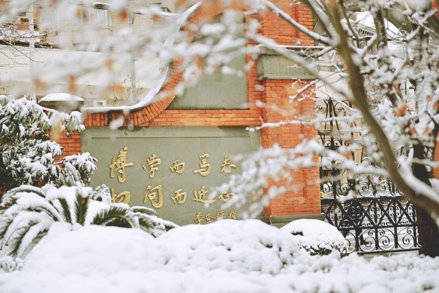 南洋中学:滨江湾湾,露凝成霜,有美南洋,在水一方。初冬校园,风景如画,南洋后浪,青春绽放。