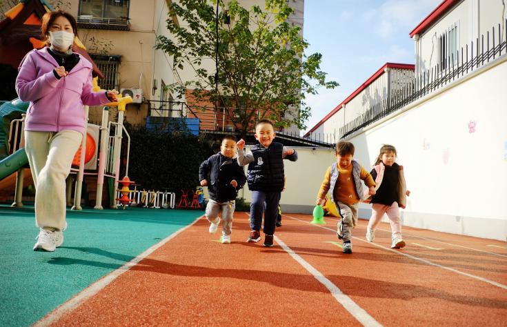 哈密路幼儿园:阳光下,孩子们的快乐就是那么简单。