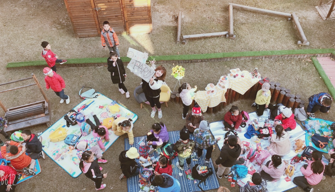 阳光城幼儿园:铺上五彩的野餐垫,摆上丰盛的美食,插上一束向阳花,来一场冬日派对吧!