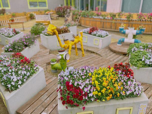 海贝尔幼儿园:和煦暖阳的照耀下,幼儿园里生机盎然。