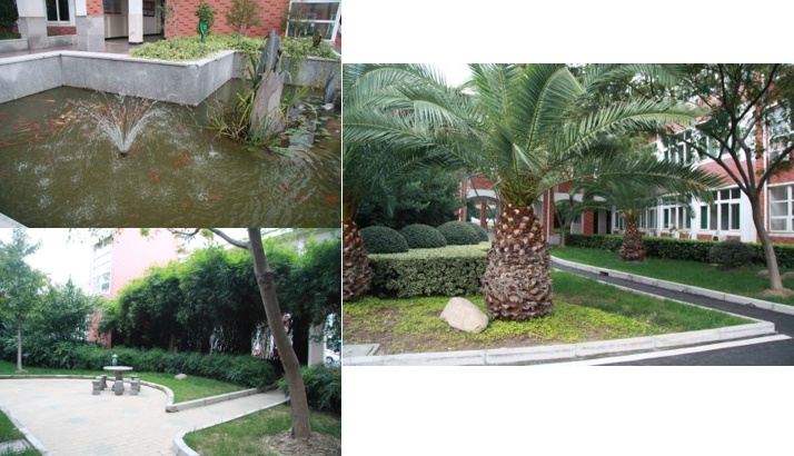 上外附小:校园绿化布局合理、精巧别致、轻盈飘然、典雅凝重,营造了良好环境。