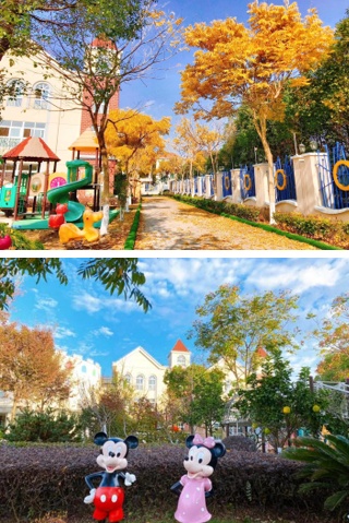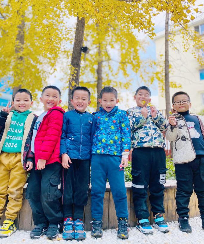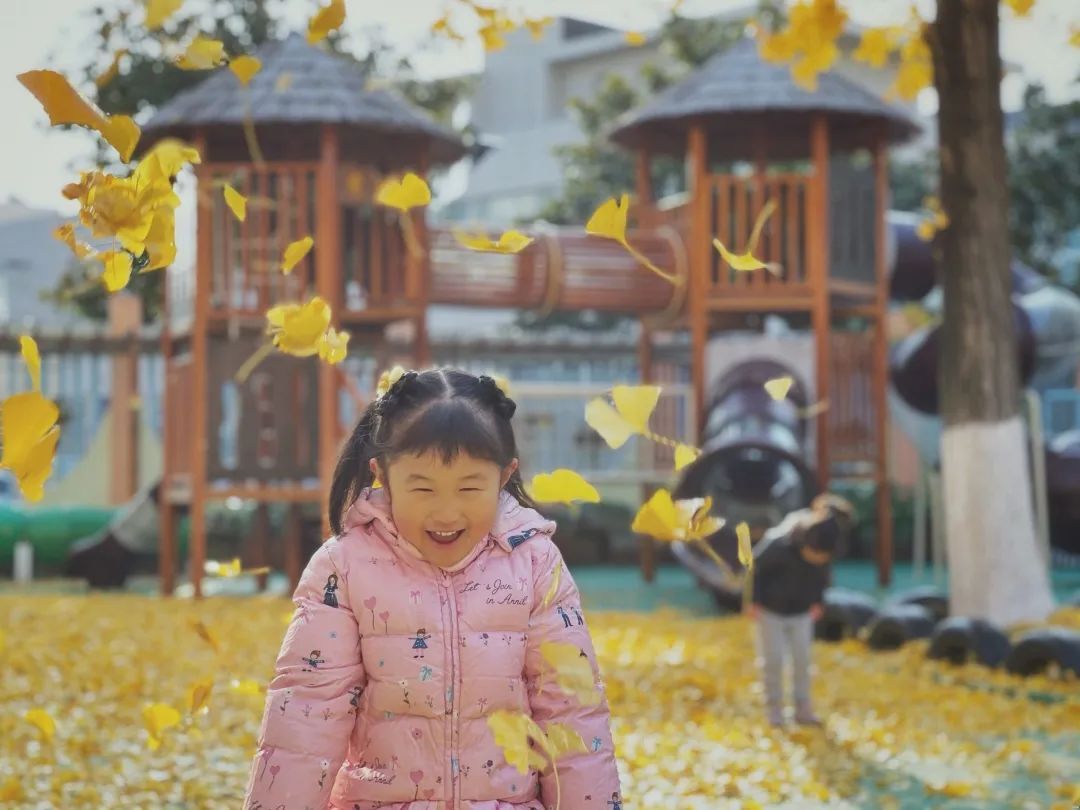 童欣幼儿园:幼儿园里的银杏树是童欣的一抹亮色,金灿灿的银杏叶随风飘落,像一只只金色的蝴蝶飞舞。