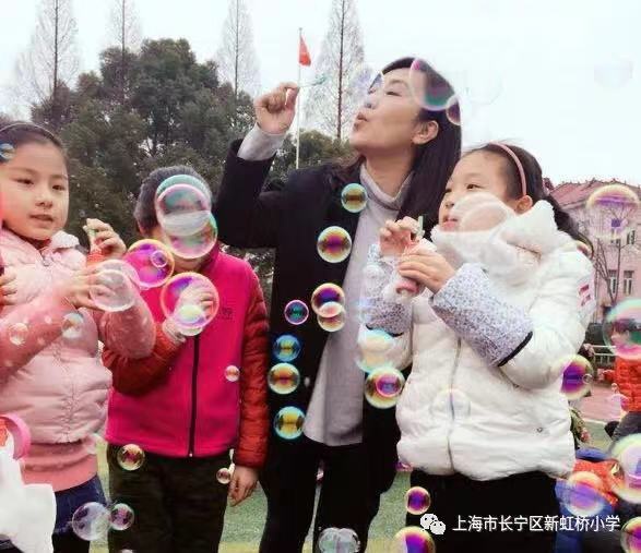 新虹桥小学:学校为孩子们准备好泡泡瓶,孩子们置身于“梦想天堂”,欢声笑语不断。